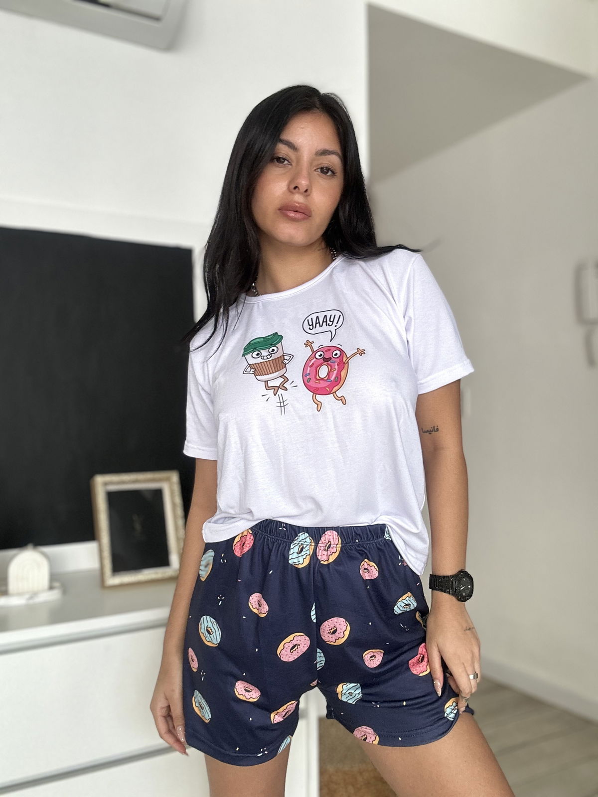 Talle 2: Remera ancho 105cm, Largo 59cm. Short: Cadera 105 cm, Largo 34